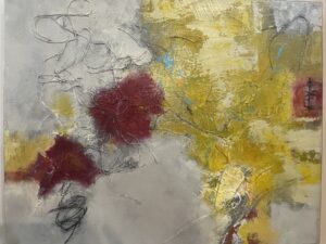 The emotional backdrop to her themes would be identifying the feelings that lay in the shadows of our mind but are not acknowledged in our outer reality or disclosed to those around us. Our shadow self is another layer of our identity, disclosing memories, reflections, regret, guilt, self hatred, along with such things as revenge, sorrows, dreams, and fears. An attempt to dialog with these fleeting moments of our human existence are the origins of these abstract paintings.